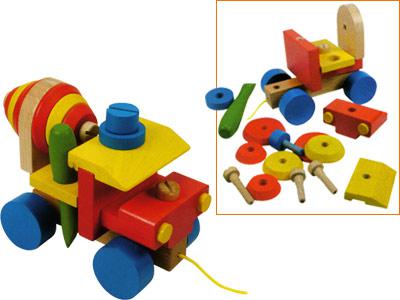 Увлекательная развивающая игрушка, которую можно собирать и разбирать, или катать за веревочку как машинку-бетономешалку. Конструктор выполнен из натурального дерева.