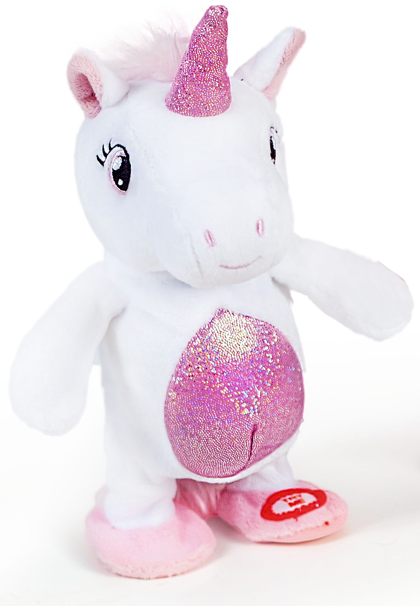 Уникальное предложение среди интерактивных мягких игрушек - милый Единорог, который шагает и повторяет всё, что услышит! Механика игры проста и забавна: Вы нажимаете на кнопку TryMe, говорите что угодно и Единорог начинает ходить и повторять Вашим голосом то, что Вы сказали.