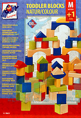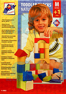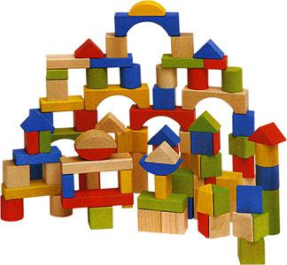 - кубики выполнены как из неокрашенного дерева, так и из окрашенного в основные цвета – красный, желтый, синий или зеленый