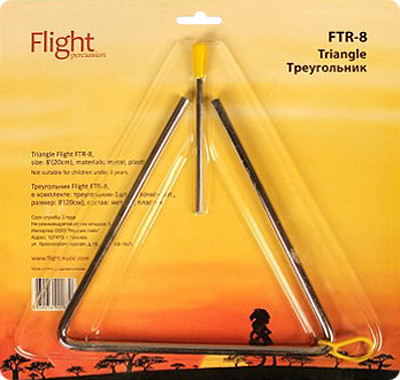 Он подвешивается за один из углов на тонкой проволоке или тесьме, которую держат в руке или прикрепляют к пюпитру. По треугольнику ударяют металлической палочкой: при легком ударе звук получается нежный, "воздушный", а при сильном - яркий, кристаллический.