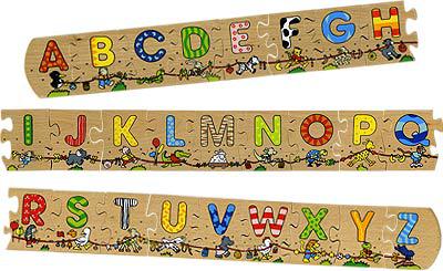 - если собрать правильно весь пазл-алфавит, то ребёнок увидит, как снизу, вдоль одной верёвочки, идут забавные зверята!