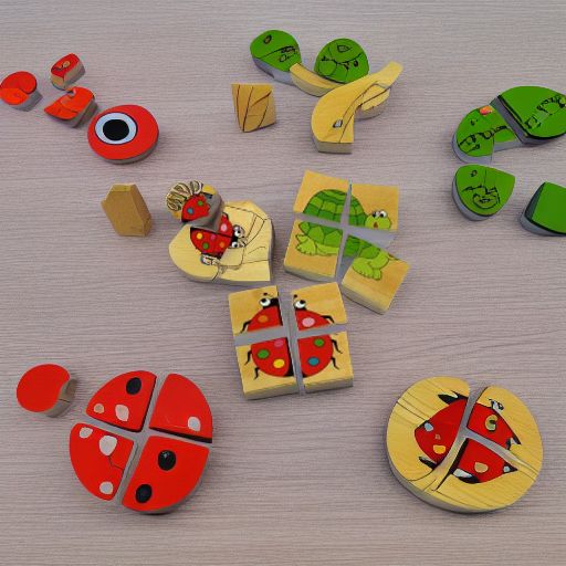 - картинки на пазлах: Божья коровка, Бабочка, Пчелка и Черепашка;