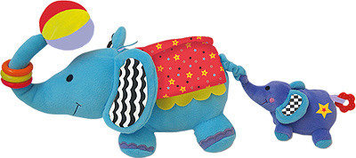 Яркая подвесная игрушка СЛОНИКИ предназначена для зрительного и слухового развития ребенка от одного года. Красочный принт текстиля и контрастные детали из упругого пластика помогают улучшить цветовое восприятие. При подергивании слониха со слоненком начинают вибрировать, чем доставляет массу радостных эмоций малышу. Безопасное зеркальце, мелодичная погремушка, разноцветный мячик, который с легкостью превращается в отдельный игровой элемент, – все явные и скрытые свойства направлены на познание и изучение окружающего мира.