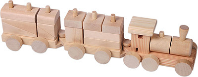 Колесные вагоны служат основой для этого деревянного паровоза - конструктора. Паровоз состоит из двенадцати разборных частей, надевающихся на прочные колышки, за счет чего он может собираться и разбираться снова и снова.