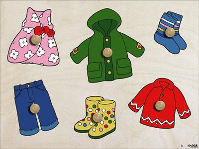 Занимательная развивающая игра ОДЕЖДА – вкладывание фигурных деталей в рамку с соответствующими выемками.