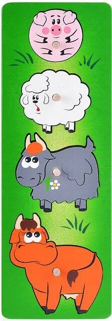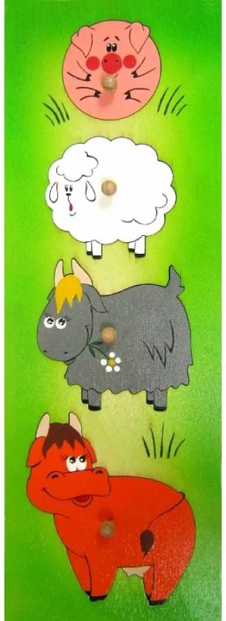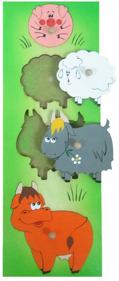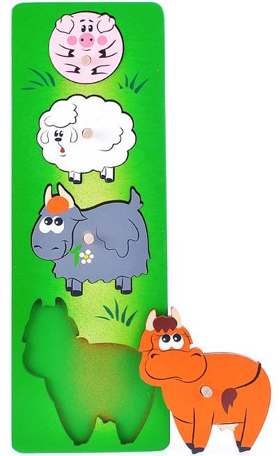 Мозаика вкладыш знакомит маленького исследователя с жителями фермы. У каждого героя прикреплена специальная ручка, чтобы крохе было удобнее доставать игрушку из рамки. Пусть ваш ребенок познакомится с коровкой, козочкой, овечкой и поросенком! Деревянная основа имеет скругленные края. С лицевой стороны нанесена зеленая краска, которая имитирует луг, полный сочной травы. Фигурки животных расположены сверху вниз в порядке увеличения размера. Деревянные детали хорошо обработаны, что позволяет ребенку безопасно взаимодействовать с мозаикой. Взаимодействие с фигурками улучшает мелкую моторику, цепкость и ловкость пальчиков. Маленький исследователь углубляет свои знания о братьях наших меньших. Он учится использовать звукоподражания, которые развивают речевой аппарат и подготавливают его к говорению. Размеры доски 28х0.7х10 см (размеры вкладышей от 45х45х10 мм до75х90х10 мм), вес 160 гр.