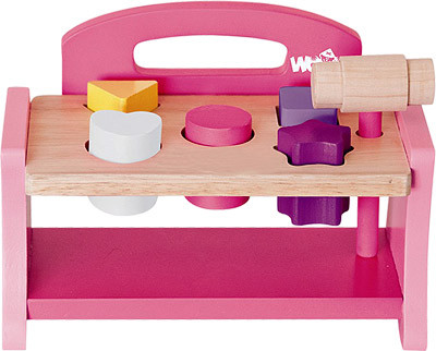 Занимательная развивающая игрушка из дерева – забивать молоточком специальные столбики в виде фигурных кубиков. Увлекательная игра приводит в восторг всех малышей! Цветовая гамма особенно понравится девочке.