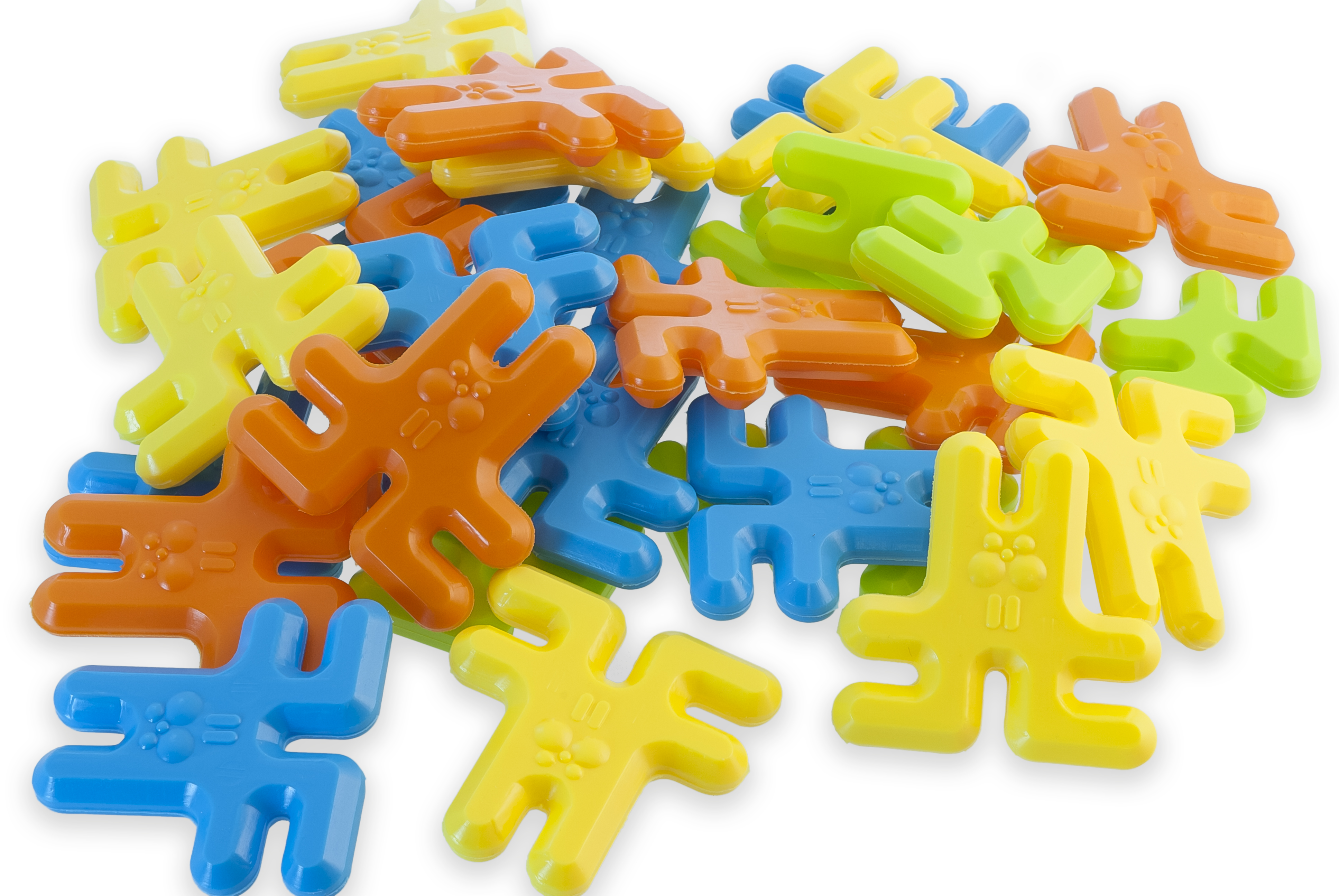 Конструктор состоит из крупных гибких и округлых деталей в форме забавных кроликов в четырех основных цветах. Ребенок может как выполнять упражнения на карточках, повторяя последовательность цветов и соединений, так и придумывать комбинации самостоятельно. Способствует развитию пространственного мышления, навыков классификации и сортировки предметов по цветам и форме, формирует творческие способности ребенка, обеспечивая его увлеченность и сосредоточение внимания. Состав: 32 детали конструктора размером 8 см, примеры сборки, дидактические инструкции