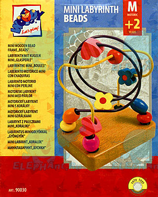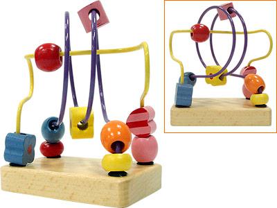 Развивающая деревянная игрушка с проволоками-лабиринтами и разноцветными подвижными фигурками-бусинами.
