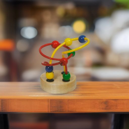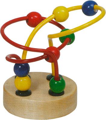 Развивающая деревянная игрушка с проволоками-лабиринтами и разноцветными подвижными фигурками-бусинами.
