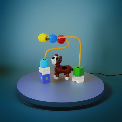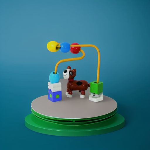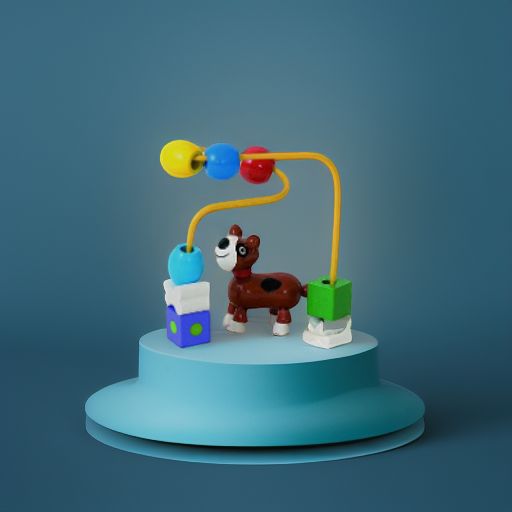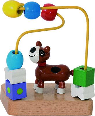 Развивающая деревянная игрушка с красочной фигуркой ПЕСИКА и изогнутой проволокой с разноцветными подвижными бусинами вокруг него.
