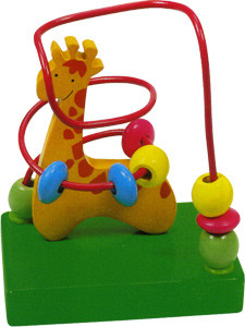 Развивающая деревянная игрушка с красочной фигуркой Жирафа и проволоками-лабиринтами вокруг него с разноцветными подвижными бусинами.
