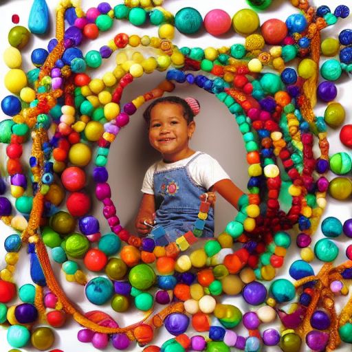 - 70 крупных бусин разной формы (шар, куб, цилиндр) и цвета (красный, желтый, зеленый, голубой);