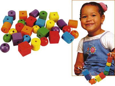 Набор разноцветных деревянных бусин для увлекательного собирания на шнурке разнообразных поделок, украшений – всего, что подскажет богатейшая детская фантазия.