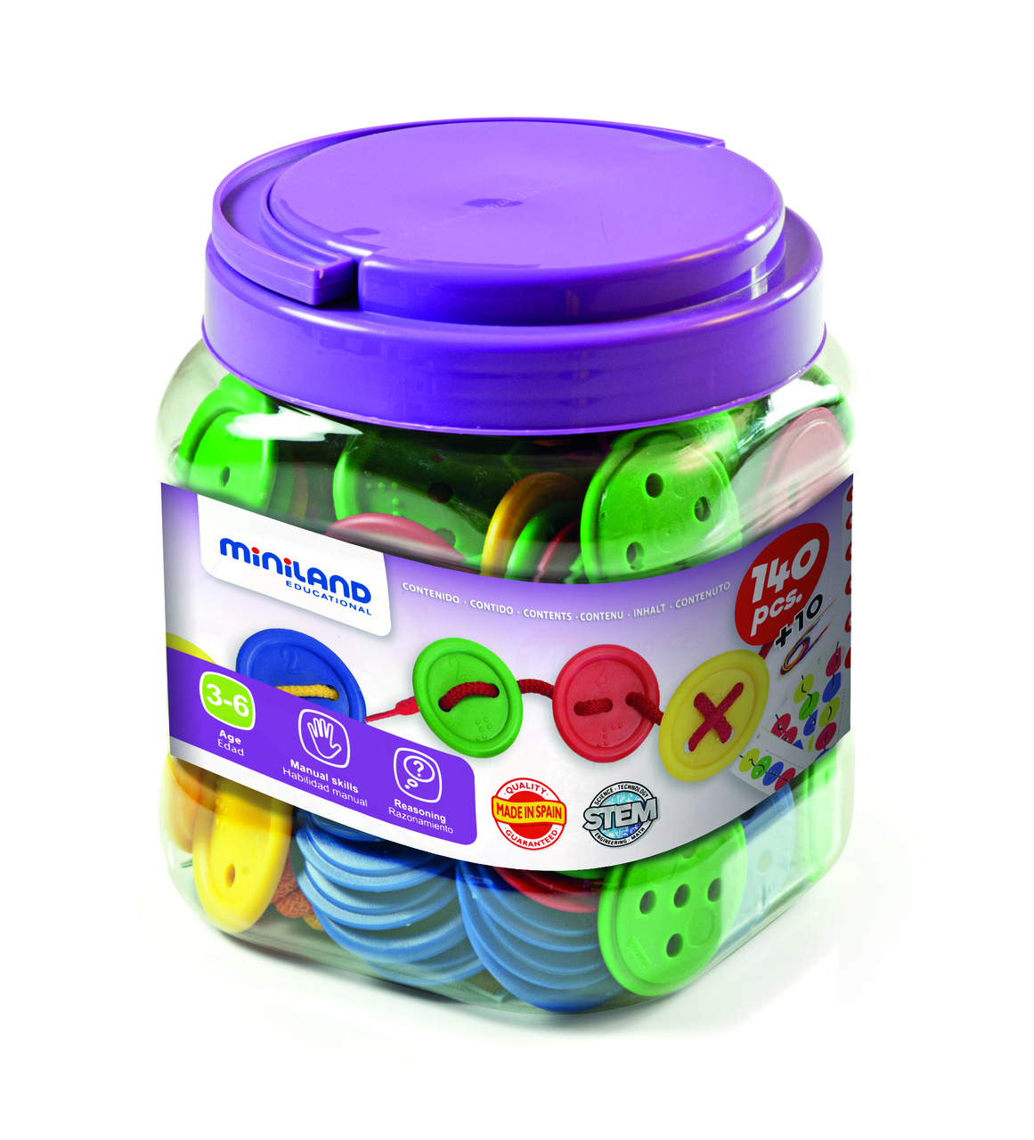 Берите минилендовский конструктор с шнуровкой и пуговицами! Им можно готовить, осваивая базовые навыки. А еще есть набор Lacing Buttons с контейнером, чтобы все было в порядке! С 140 элементами игрушка Miniland станет отличным творческим заданием для детей. Она развивает моторику и воображение, так что не упустите возможность порадовать своего малыша!