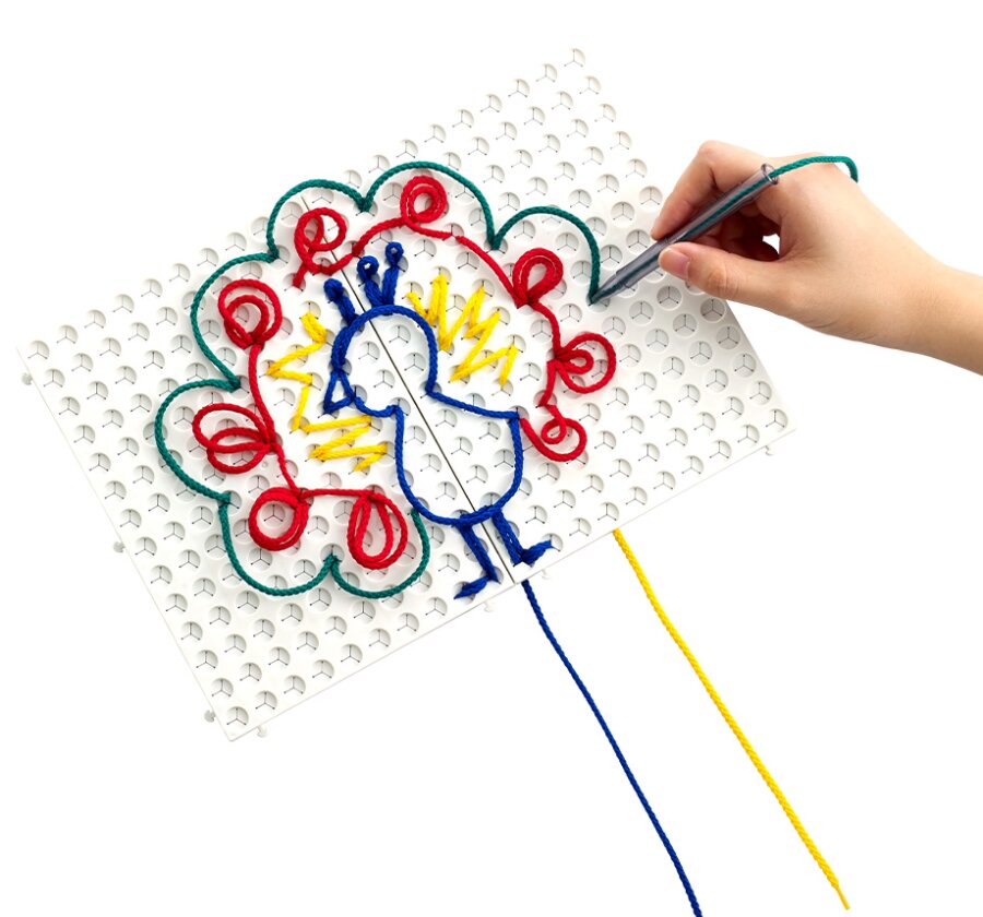 Набор шнуровок «Юниор» способствует развитию тонкой моторики рук, глазомера, координации движений и формированию навыков шнуровки. С его помощью ребенок развивает творческое мышление, навык построения рисунков, усидчивость и терпение, умение справляться с поставленными задачами. Дети развивают мелкую моторику, развивая при этом навыки решения проблем, творческого мышления, моделирования и искусства, используя Junior String Art. Высококачественные плинтусы разработаны, чтобы выдерживать суровые условия классной комнаты и домашнего использования. В комплекте: - планшеты - 2 шт (размер планшета 19,6 х 14 см) - шнурки - 8 шт (4-х цветов) - ручка для шнурков - 1 шт - руководство. Набор упакован в картонную коробку. Если отсканировать QR-код на коробке набора, то можно скачать карточки с заданиями. 2 плинтуса, 8 шнурков, 1 ручка-шнурок, руководство по занятиям и дополнительные занятия онлайн