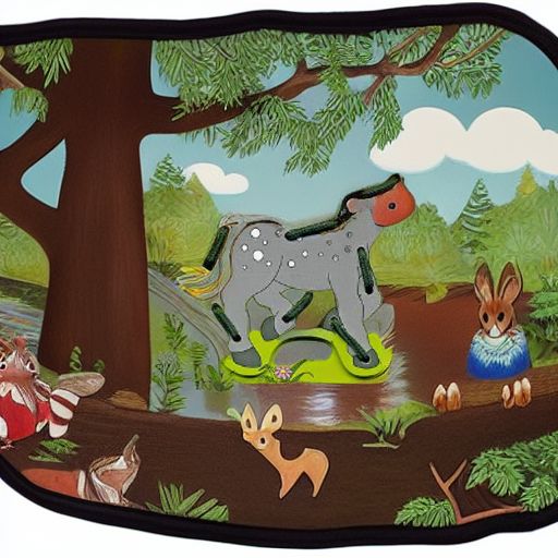 - 4 отдельные детали-животные: Лошадь, Уточка, Собачка и Кошка – крупные фигурные детали, также с отверстиями