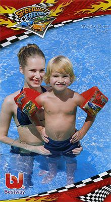 Надувные нарукавники АВТОГОНКИ со стильным дизайном помогут ребенку научиться держаться на воде и освоить азы плавания.