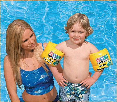 Надувные нарукавники из серии ШКОЛА ПЛАВАНИЯ, шаг № 3. Они помогут ребенку научиться держаться на воде и освоить азы плавания.
