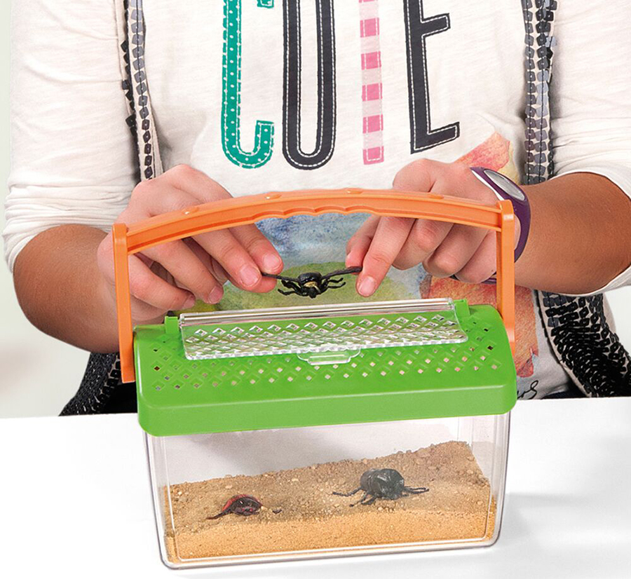 Дом-обсерватория для всех видов насекомых. С ручкой, чтобы носить его везде. Крышка перфорирована для вентиляции. Транспортабельный. Пластмасса. Домик предназначен для создания условий для наблюдения за поведением насекомых и представляет собой прозрачный контейнер со скругленной непрозрачной крышей и удобной ручкой для переноса. Размер основания конрейнера должен 16,5х8,5 см, габаритная высота (без учета размеров ручки) 11,5 см. По поверхности одной продольной половины крыши равномерно расположены мелкие сквозные отверстия для обеспечения свободного доступа воздуха, на второй продольной половине крыши расположена прозрачная поднимающаяся крышка размером 13,4х5 см. Прозрачная крышка имеет равномерно расположенные мелкие сквозные отверстия. На нижней поверхности продольной планки ручки расположены 4 рельефных углублений для удобного захвата ручки пальцами ребенка при переносе контейнера. Способствует повышению мотивации занятий исследовательской деятельностью, расширения представлений об окружающем мире, воспитанию бережного отношения к природе.