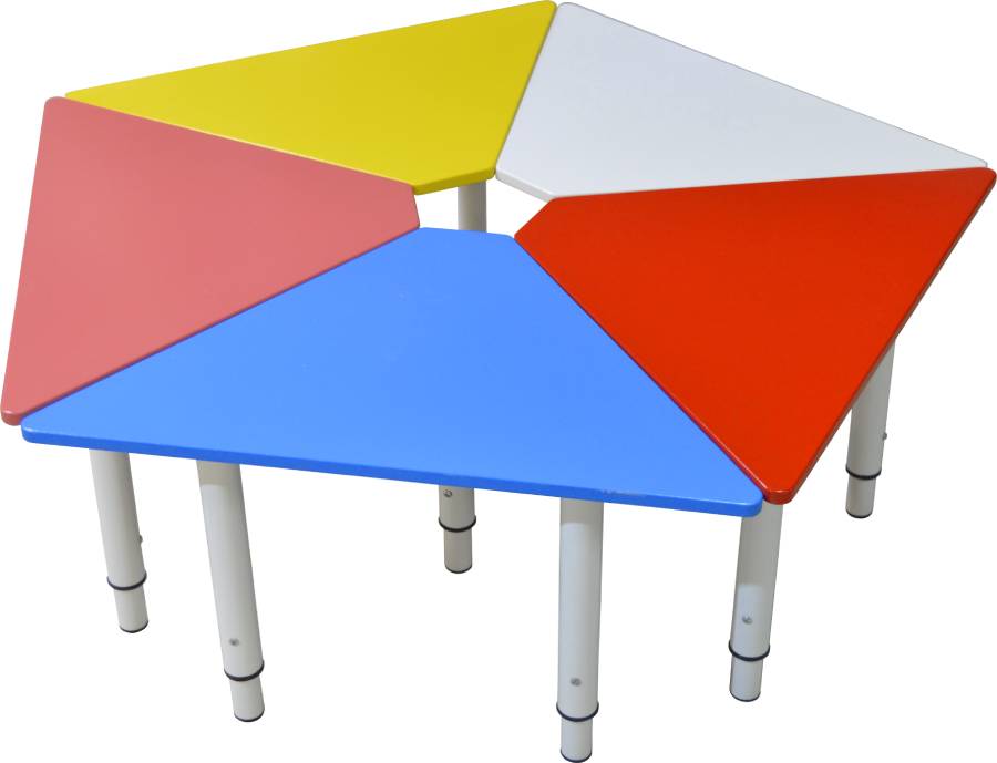Яркий, оригинальный в дизайнерском исполнении детский стол «Ромашка» украсит детский уголок. Его форма оправдывает свое название: он сложен из отдельных элементов треугольной формы, которые могут быть использованы отдельно и самостоятельно. Мягкие, элегантные линии углов делают этот предмет интерьера безопасным для ребенка. Стол состоит из 5 «лепестков-столешниц»,выполненных из фанеры высшего качества, окрашены в яркий цвет и покрыты сверху лаком. Столешницы крепятся к металлическим ножкам, которые можно регулировать по высоте. Размеры: Столешница: Длина: 1123 мм; Ширина: 1070 мм. Размер одной секции: Длина: 675 мм;Ширина 420 мм. "Высота ножек" от 380 до 560 мм. Тех характеристики: Оборудование допустимо к использованию в помещениях при температуре: от +1 до +30 и допустимой влажности 40-60 % Состав: Фанера, металл Страна изготовления: Россия Торговая марка (бренд): Romsens Назначение: Предмет мебели. Изделие имеет сертификат соответствия Техническому регламенту Таможенного союза ТР ТС 008/2011. Изделие соответствует нормам пожарной безопасности (сертификат соответствия ПОЖАРНОЙ БЕЗОПАСНОСТИ). Примечание: предприятие-изготовитель оставляет за собой право, без уведомления потребителя, вносить незначительные изменения в конструкцию, комплектацию, технические характеристики, внешний вид, включая изменения по упаковке, не ухудшающие потребительских свойств изделия и его методического назначения.