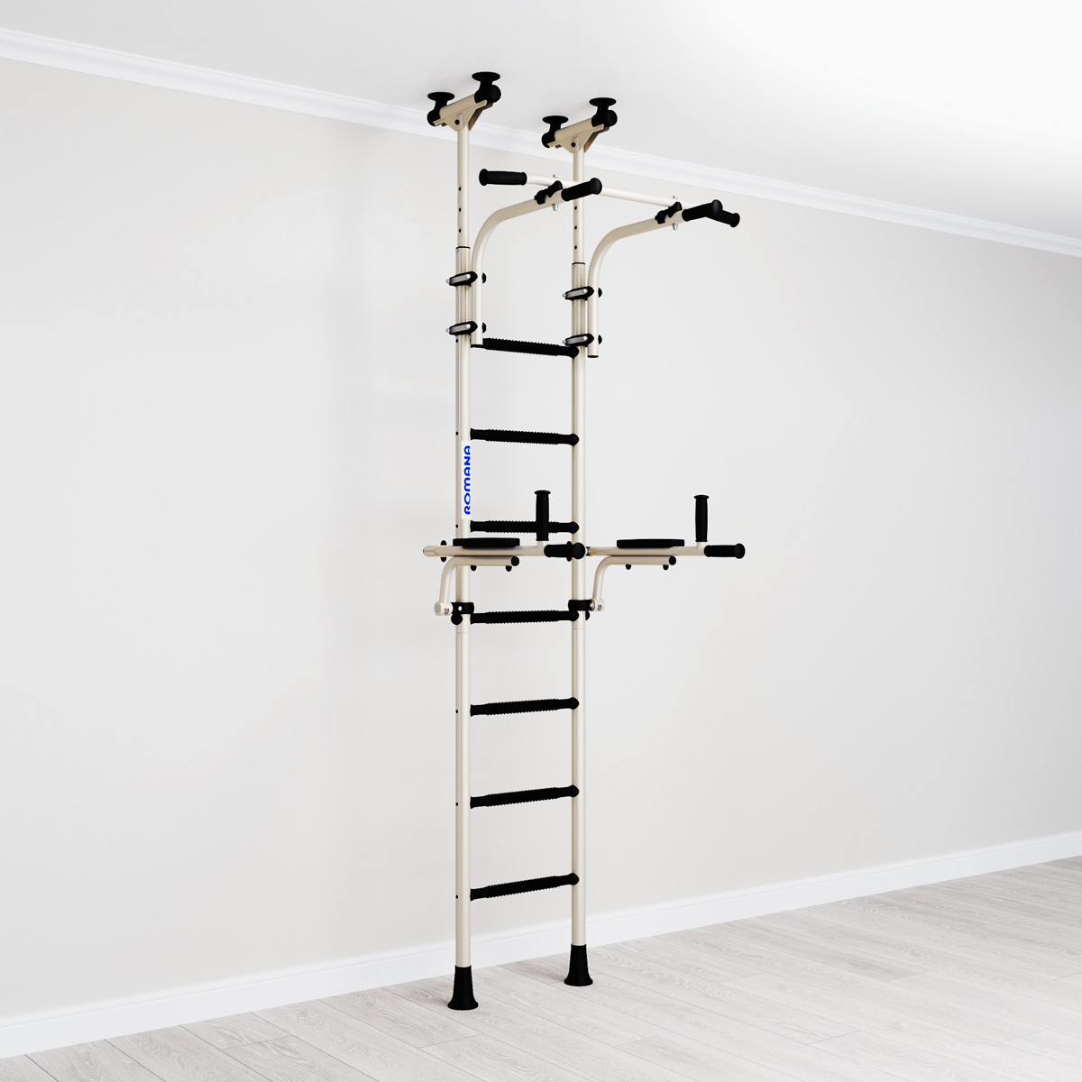 Спортивный комплекс ROMANA R10 - хороший выбор для занятий физкультурой всей семьей. Ввиду лаконичного дизайна, он также будет оптимальным решением как для офиса так и для комнаты современного подростка. Шведская стенка крепится враспор, между полом и потолком; подходит для помещений с гипсокартонными стенами. По желанию ее можно легко переместить в другое место комнаты.