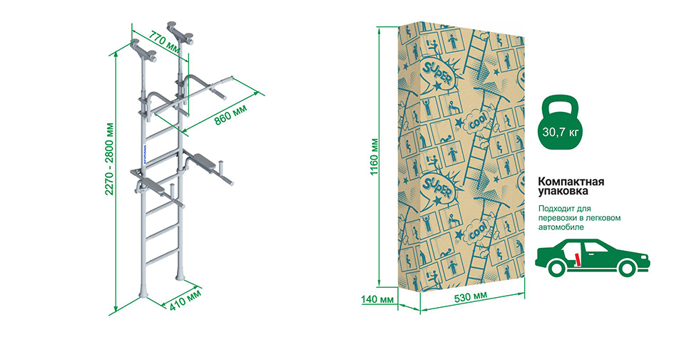 В комплекте идут откидные брусья, которые можно перевести в вертикальное положение после занятий, чтобы сэкономить пространство. Турник свободно перемещается на нужную высоту и крепится к гимнастической лестнице современными надежными хомутами. ROMANA R10 поставляется в двух расцветках. К данному спортивному комплексу можно докупить любое навесное оборудование из нашего ассортимента.