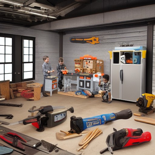 - Убирайтесь после игры с помощью встроенной раковины и поддерживайте чистоту воображаемого верстака, храня аксессуары в банках для хранения, шкафах и корзинах, а также вешая инструменты на перфорированную панель