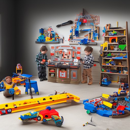 - В комплекте набор верстаков с рабочим освещением и набором аксессуаров из 45 предметов, в том числе строительными элементами скворечника, принадлежностями для рисования и набором инструментов и многим другим