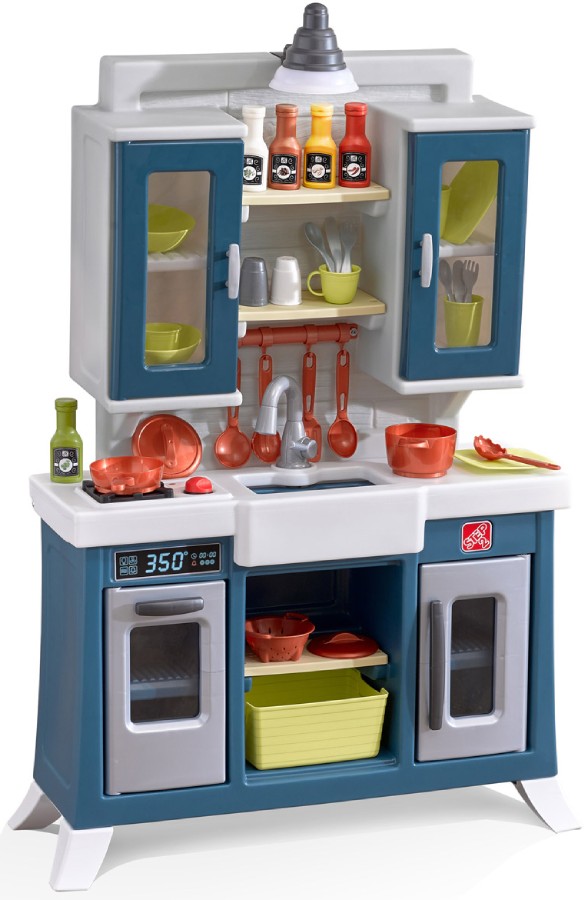 Возраст: 2+. Современная и высококачественная кухня, оформленная в деревенском стиле! Комплектация: плита с имитацией огня и забавными звуками, вместительная раковина, крючки и шкафчики с окнами, для хранения, также в комплекте 32 аксессуаров (кастрюли, сковорода, столовые приборы и др. посуда). Требуется батарейки АА (в комплект поставки не входят). Производитель: Step2 (США) Очаровательная кухня «Модерн» сочетает в себе традиционный стиль и современное наполнение! Привлекательный дизайн и эргономичность – то, что надо в ролевых играх! Очаровательная кухня «Модерн» сочетает в себе традиционный стиль и современное наполнение! Привлекательный дизайн и эргономичность – то, что надо в ролевых играх! Настоящий светильник создает уютную атмосферу загородного дома Интерактивные элементы и звуковые эффекты позволят детям наслаждаться сенсорными играми Реалистичные аксессуары включают в себя раковину со смесителем, кухонную «плитку», «деревянные стеллажи» и «медную» посуду Большое количество шкафчиков, духовка и холодильник обеспечат пространство для хранения кухонных принадлежностей и порядок на кухне Дизайн кухни позволяет маленьким поварам часами играть с друзьями, наслаждаясь общением Требуются 2 батарейки ААА (не входят в комплект) Кухня, выполненная из качественных и долговечных материалов, удобна в использовании и обслуживании Легко очищается влажными салфетками или обычными моющими средствами При сборке требуется участие взрослых В комплекте: кухня, 5 емкостей под специи, 1 кастрюля, 1 сковородка с крышкой, лампа подсветки, 2 набора посуды (чашки, миски, тарелки, столовые приборы), кухонная утварь Настоящий светильник создает уютную атмосферу загородного дома Интерактивные элементы и звуковые эффекты позволят детям наслаждаться сенсорными играми Реалистичные аксессуары включают в себя раковину со смесителем, кухонную «плитку», «деревянные стеллажи» и «медную» посуду Большое количество шкафчиков, духовка и холодильник обеспечат пространство для хранения кухонных принадлежностей и порядок на кухне Дизайн кухни позволяет маленьким поварам часами играть с друзьями, наслаждаясь общением Требуются 2 батарейки ААА (не входят в комплект) Кухня, выполненная из качественных и долговечных материалов, удобна в использовании и обслуживании Легко очищается влажными салфетками или обычными моющими средствами При сборке требуется участие взрослых В комплекте: кухня, 5 емкостей под специи, 1 кастрюля, 1 сковородка с крышкой, лампа подсветки, 2 набора посуды (чашки, миски, тарелки, столовые приборы), кухонная утварь