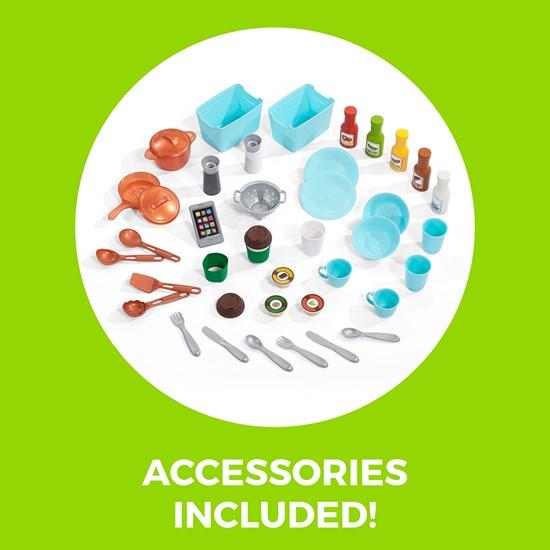 - В комплекте 24 аксессуара, включая посуду, столовые приборы, кухонные принадлежности и многое другое