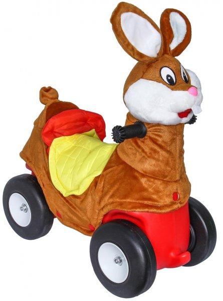 Детская игровая каталка Зайчик изготовлена из яркого, однородного и надежного пластика, выполнена в ярких цветах и имеет оригинальный дизайн. Каталка на четырех колесах движется при помощи ног ребенка. Он отталкивается ножками от пола, что позволяет контролировать скорость движения. Красочный тканевый чехол в виде забавного Зайчика создаст еще больше комфорта малышу и привлекательности игре!