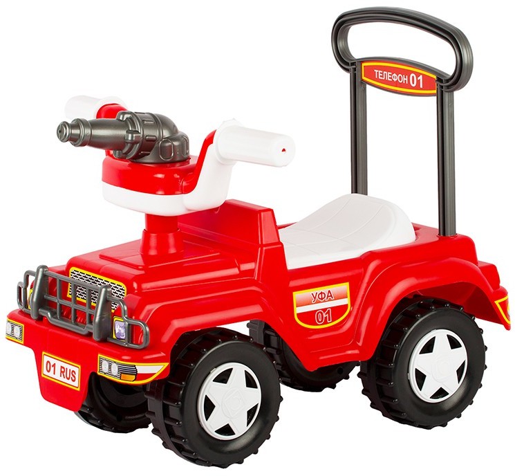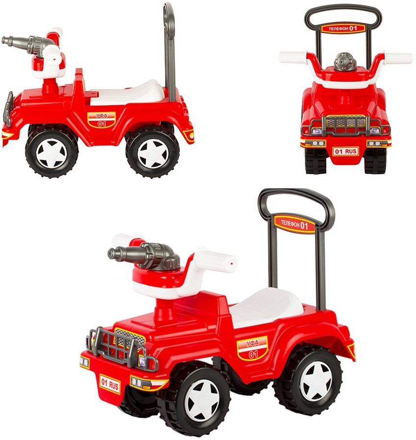 Игрушка Автомобиль-каталка «Пожарка » – пластмассовая игрушка, которую можно использовать как на улице, так и в доме. Такая машинка приводится в движение с помощью ног ребёнка, который, сидя на сиденье отталкивается ножками от пола. Сиденье машинки поднимается, во внутреннем отсеке можно перевозить игрушки. На руле установлен игрушечный брандспойт . Максимально допустимая нагрузка: до 25 кг. Игрушка изготовлена из высококачественных материалов. Изделие проверено на соответствие требованиям технических регламентов Таможенного Союза и имеет сертификацию ЕАС