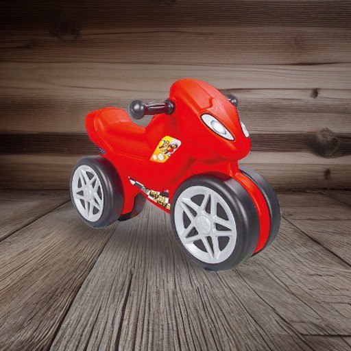 Яркая каталка для малыша выполнена в виде МОТОЦИКЛА MINI MOTO. Это стильный 4-х колесный мотоцикл выглядит как двухколесный! Ребенок катается сидя, отталкиваясь ножками от пола.
