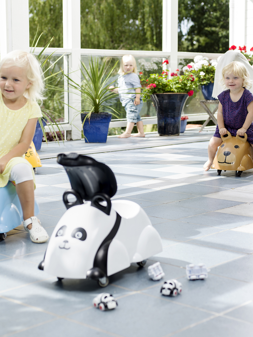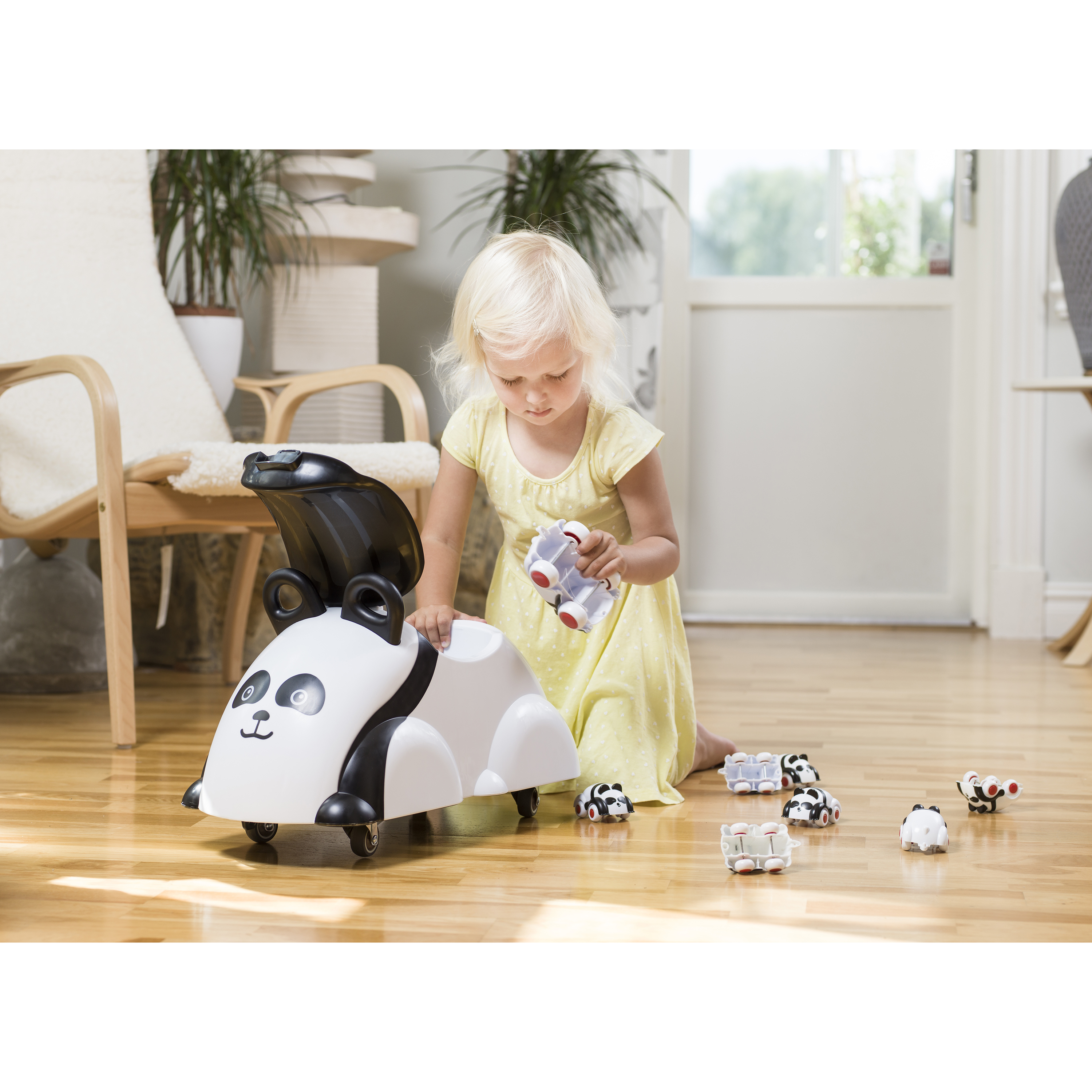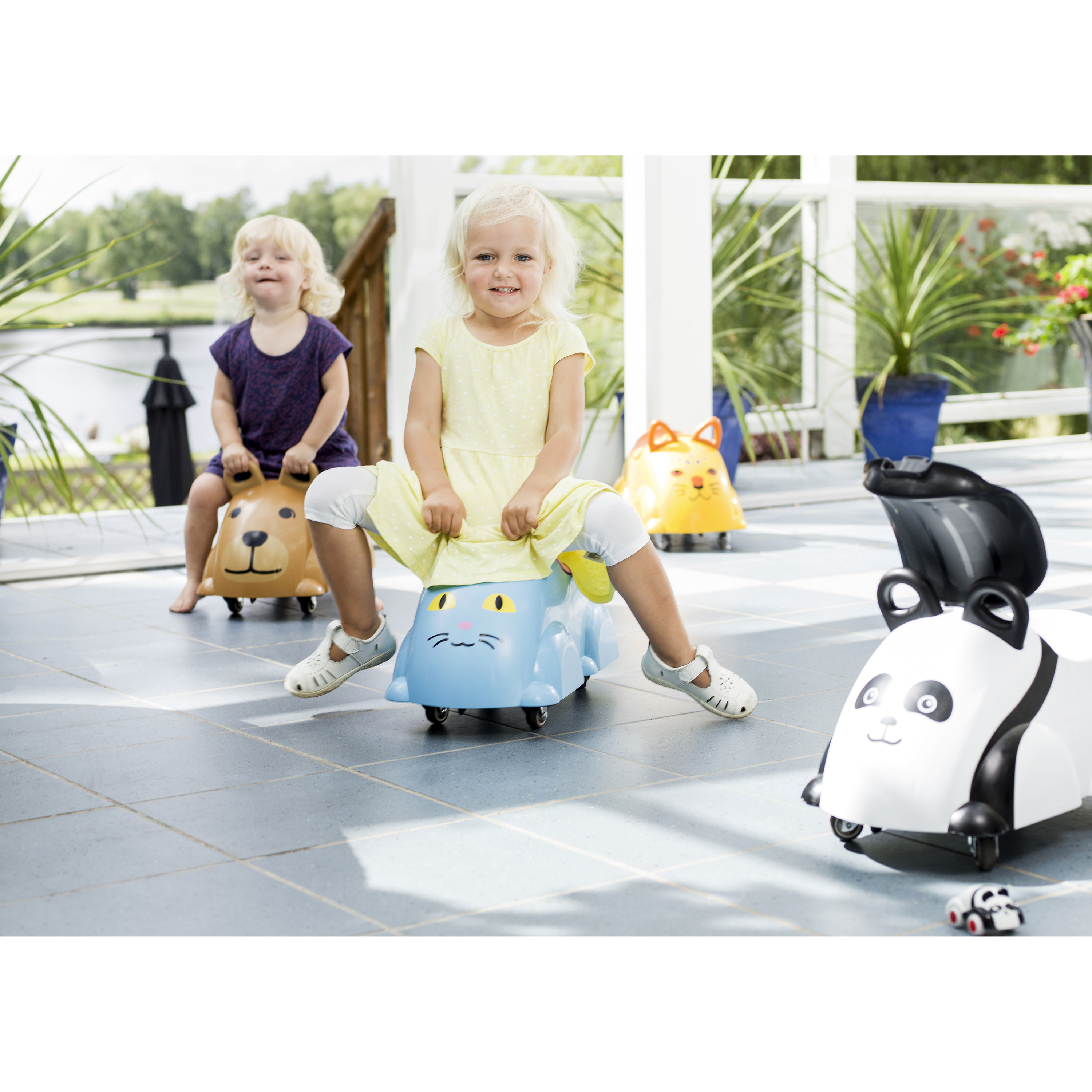 Уникальный пушкар со свободновращающимися прорезиненными колесиками. Ребенок отталкивается ножками и едет в любую из 4х сторон или разворачивается на месте. Под сидением - место для хранения игрушек. Разрешенная нагрузка - 40 кг. Подарочная упаковка.