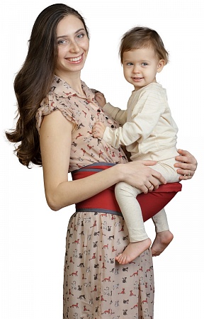 Хипсит представляет собой широкий пояс с сиденьем для ребенка, который застегивается вокруг маминой поясницы. Малыш располагается на бедре родителя в привычной, естественной позе – а вредные нагрузки «на изгиб» позвоночника, неизбежные при таком ношении на руках или в слинге, отсутствуют!